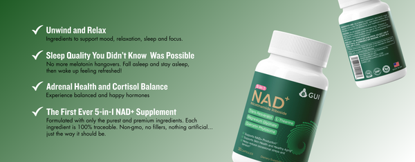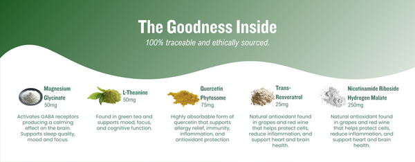 This 30-capsule supplement combines NAD+, Trans-Resveratrol, Quercetin Phytosome, L-Theanine, and Magnesium Glycinate. It boosts energy, promotes healthy aging, and helps manage cortisol levels. Perfect for those seeking natural stress relief. Consult a healthcare provider before use.